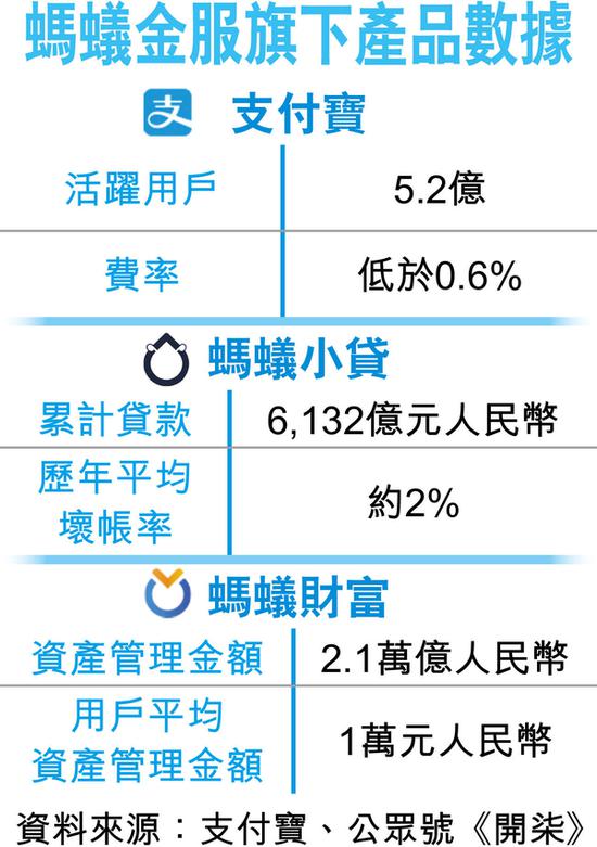 港股讯 据香港经济日报报道,旗下蚂蚁金服上市消息不断,内地媒体昨引述一份融资文件指,蚂蚁金服将在港股及A股两地上市,最快下半年挂牌,估值高达1500亿美元(约1.2万亿港元)。蚂蚁金服发言人回应本报查询指,未有上市时间表,亦拒评上市地点。阿里曾公布,支付宝活跃用户为5.2亿,移动支付比例约82%,但报道引述的融资文件则指,支付宝目前活跃用户约4.5亿,费率低于0.6%,两者的数字有所出入。金融理财产品方面,融资文件显示,蚂蚁小贷的累计贷款金额为6132亿元(人民币。下同),历年平均坏帐率约2%。包括余额宝的一站式理财平台蚂蚁财富是全球最大的在线理财平台,资产管理金额达2.1万亿元,用户平均资产管理规模约1万元。内地电子支付竞争激烈,支付宝估计仍占主导地位,反映其价值据巴克莱早前报告,以交易额计,去年第三季支付宝在移动支付市场占53.7%,按年升3.3个百分点;(00700)旗下微信支付的市占率为39.4%。传私募兜售投资份额千万元起然而,蚂蚁金服的重点产品余额宝规模庞大,一直备受内地监管机构关注。据天弘基金公布的数据显示,去年底余额宝规模维持1.5万亿元左右,年内多次出现调整。个人交易帐户持有上限由起初100万元锐减至10万元,单日申请购买额2万元,而且每日限额抢购。报道指,市场上已经有私募基金开始向散户兜售到手的投资份额,起投金额为1000万元,上市后即可退出。此外,对冲基金老虎环球基金,私募股权公司华平投资,新加坡国有投资公司淡马锡控股均传出有意投资蚂蚁金服,是轮融资金额达90亿美元(约702亿港元)。声明:森林仔独家稿件,未经授权禁止转载。